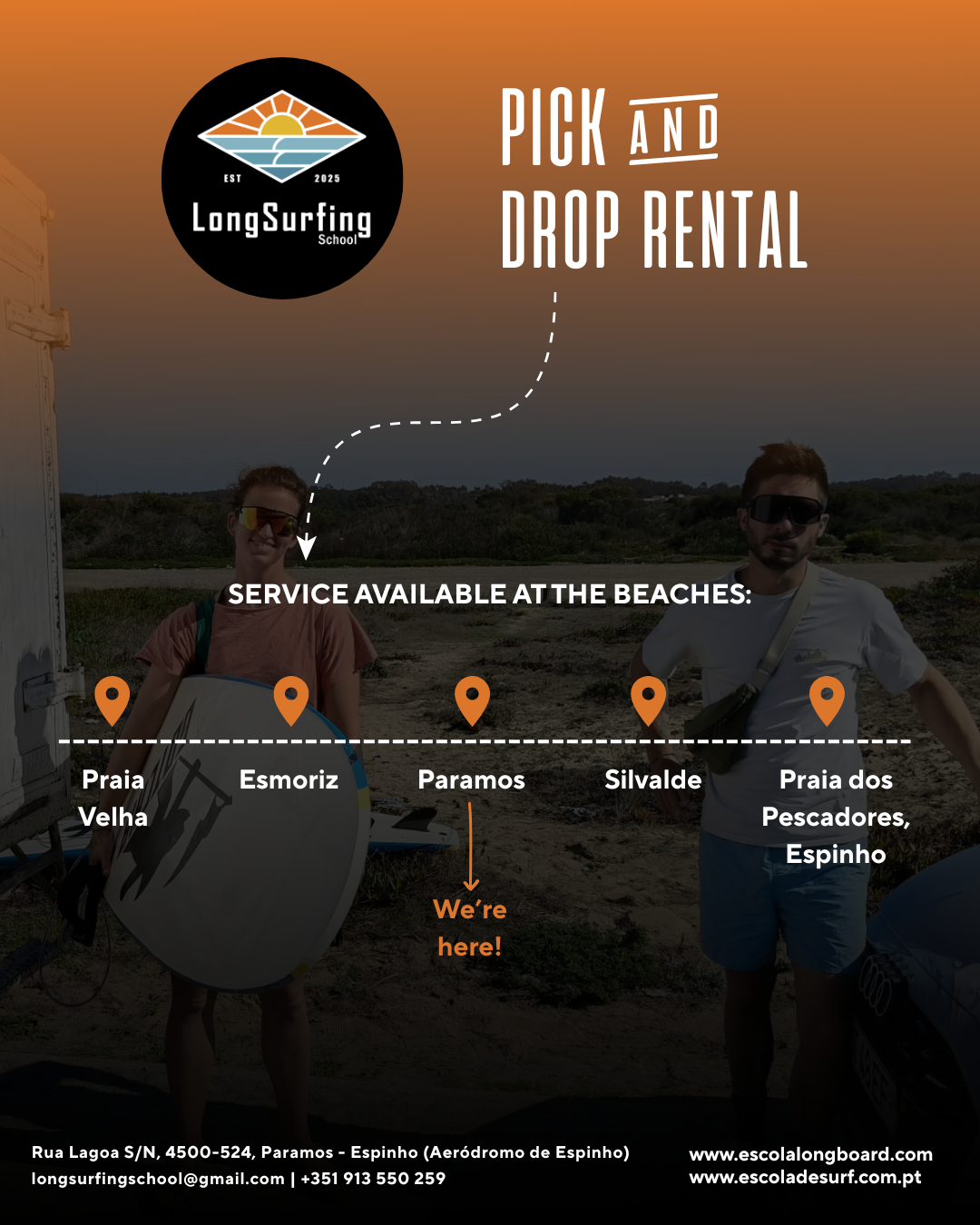 Contact us by email for longsurfingschool@gmail.com, whatsapp (+351 964 620 718), instagram ou facebook.